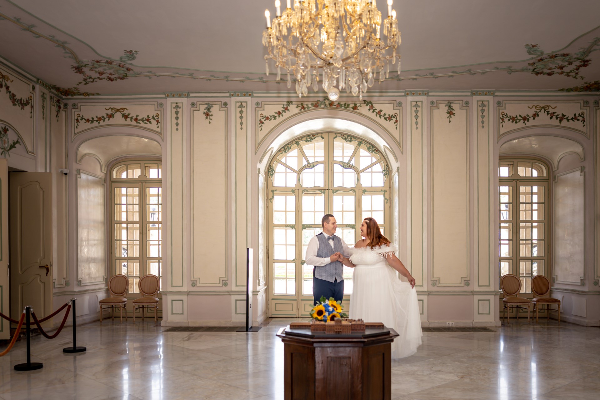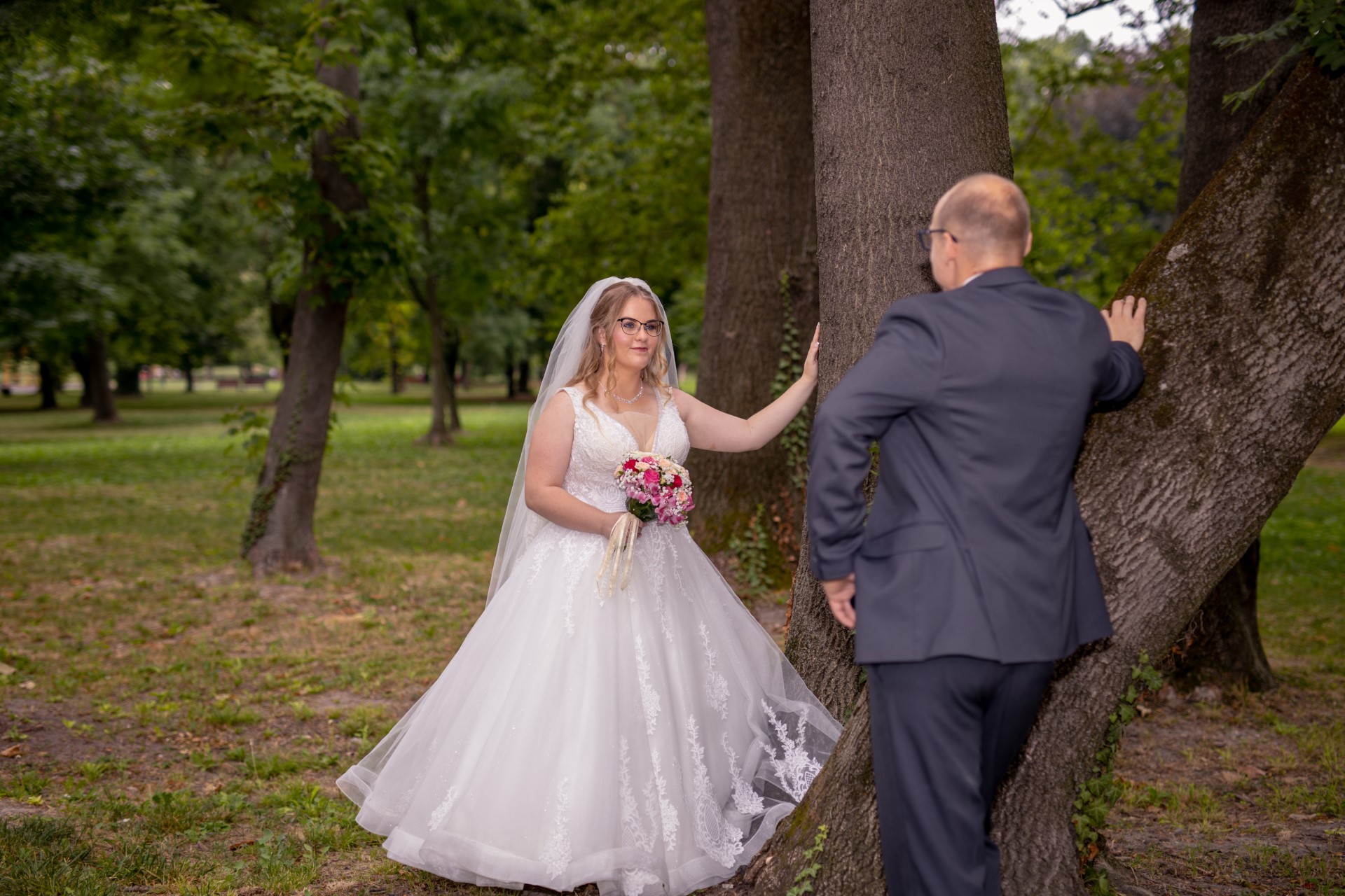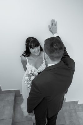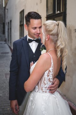 Ez az a pillanat, amikor a vőlegény és a menyasszony az esküvői díszben először pillantja meg egymást. Gyakran ez a nap legérzelmesebb része, amit érdemes külön, intim környezetben, a vendégek nélkül megörökíteni.
